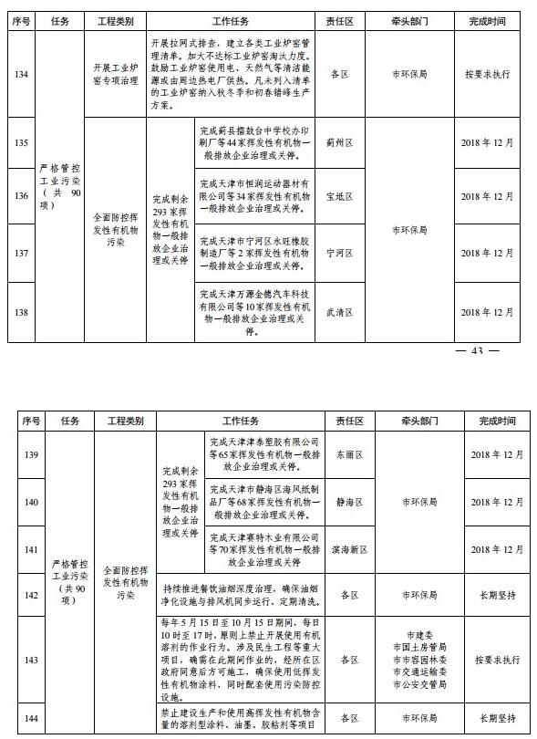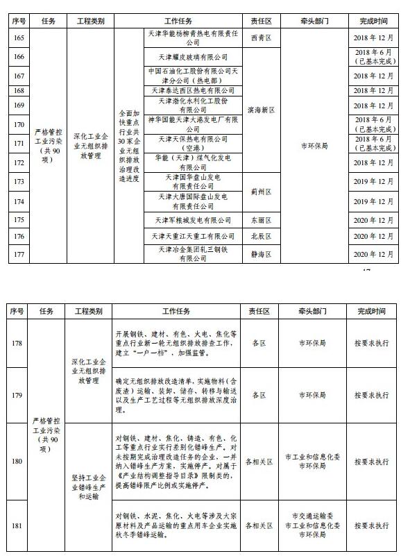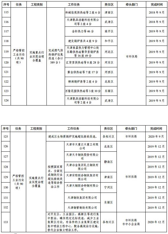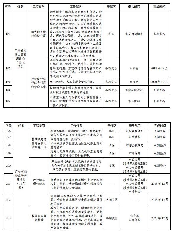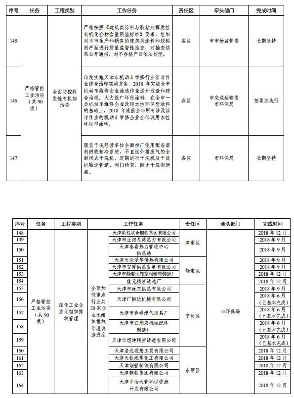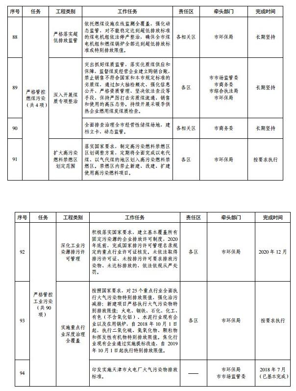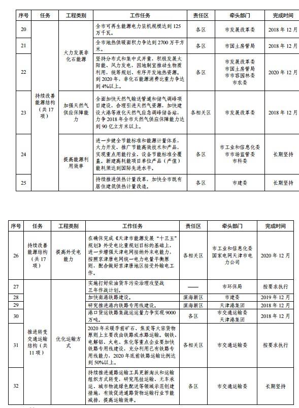 天津市藍(lán)天保衛(wèi)戰(zhàn)三年計(jì)劃重點(diǎn)工程任務(wù)分解表