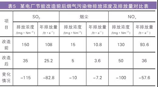 根據改造前后各項數據對比可知,該工程實施改造后,電廠煙氣污染物排放濃度將得到大大削減,各項指標均達到超低排放標準;SO2、煙塵、NOx年排放量分別減少82.8t/a、7.2t/a、63t/a,環境效益十分明顯。