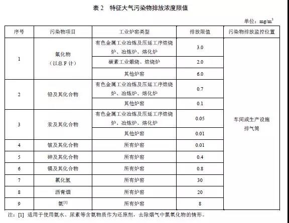 4.2 自本標準實施之日起,工業爐窯無組織排放監控點濃度限值按表3規定執行。