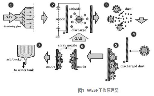 圖1 濕式靜電除霧器工作原理圖