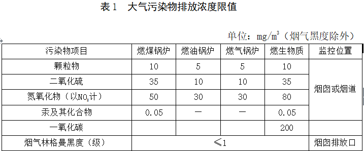 自標(biāo)準(zhǔn)實(shí)施之日起,新建鍋爐執(zhí)行表1規(guī)定的大氣污染物排放限值。自2018年11月1日起,在用鍋爐執(zhí)行表1規(guī)定的大氣污染物排放限值。
